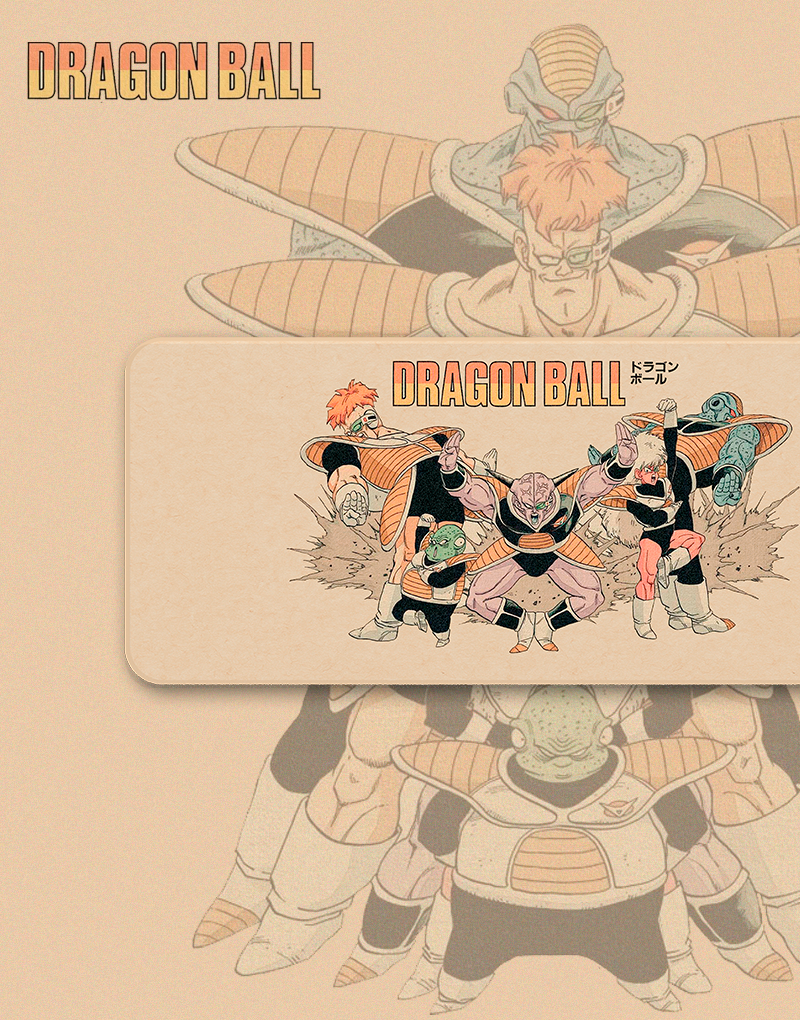 ¡TOKUSENTAI! Sumérgete en la época dorada de Dragon Ball Z con este exclusivo Mouse Pad de las Fuerzas Especiales Ginyu. Este diseño captura la estética clásica y retro del anime, rindiendo homenaje a los mercenarios de élite más temidos (y teatrales) del universo bajo el mando del Emperador Freezer. Con Capitán Ginyu, Jeice, Burter, Recoome y Guldo ejecutando su icónica coreografía de presentación, este accesorio es una pieza única para verdaderos fans.