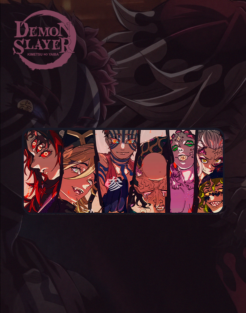 • Diseño Impactante: Una composición visual oscura y detallada que presenta a las Lunas Superiores con sus miradas características y colores intensos inspirado en el universo de Kimetsu no Yaiba.