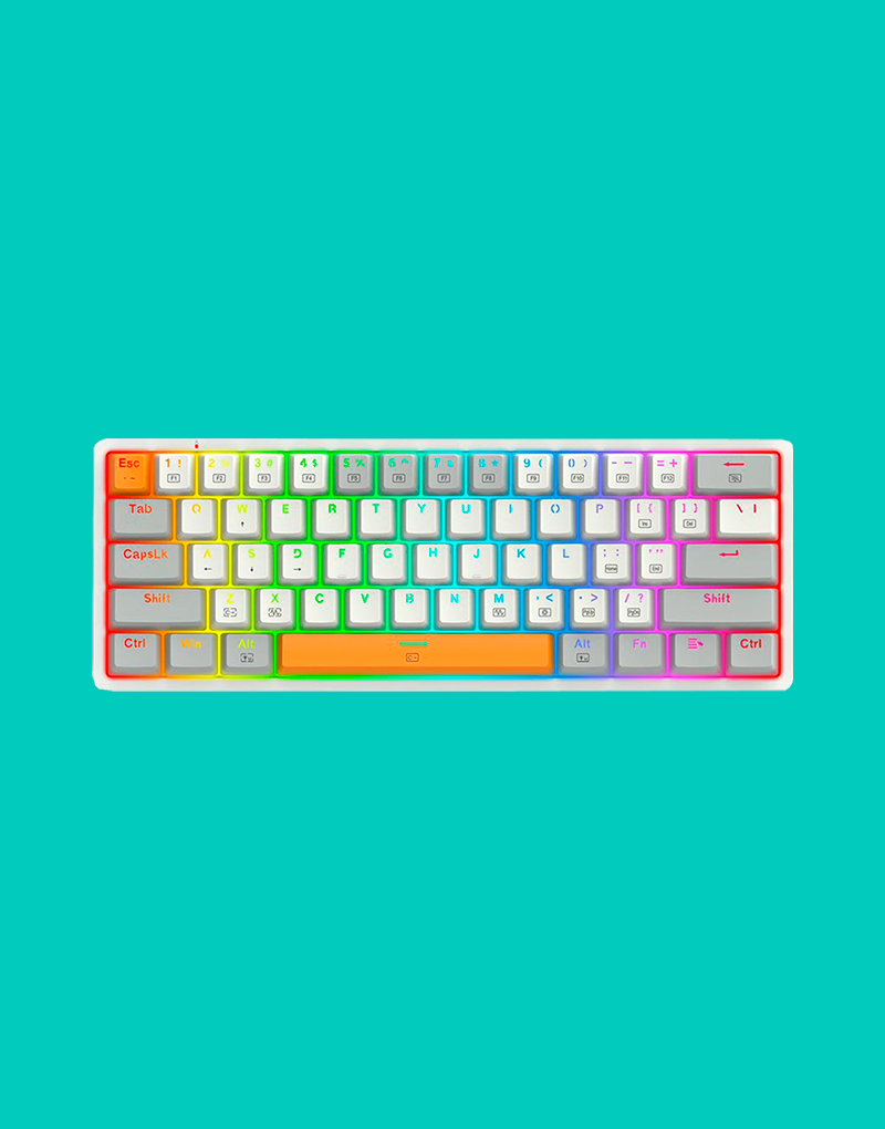 Su diseño ultra compacto 60% te da más espacio para mover el mouse sin perder funciones esenciales, mientras que su RGB dinámico personalizable eleva tu setup con efectos vibrantes y fluidos. Además, cuenta con anti-ghosting en todas las teclas y estructura resistente para largas sesiones de juego sin fallos.